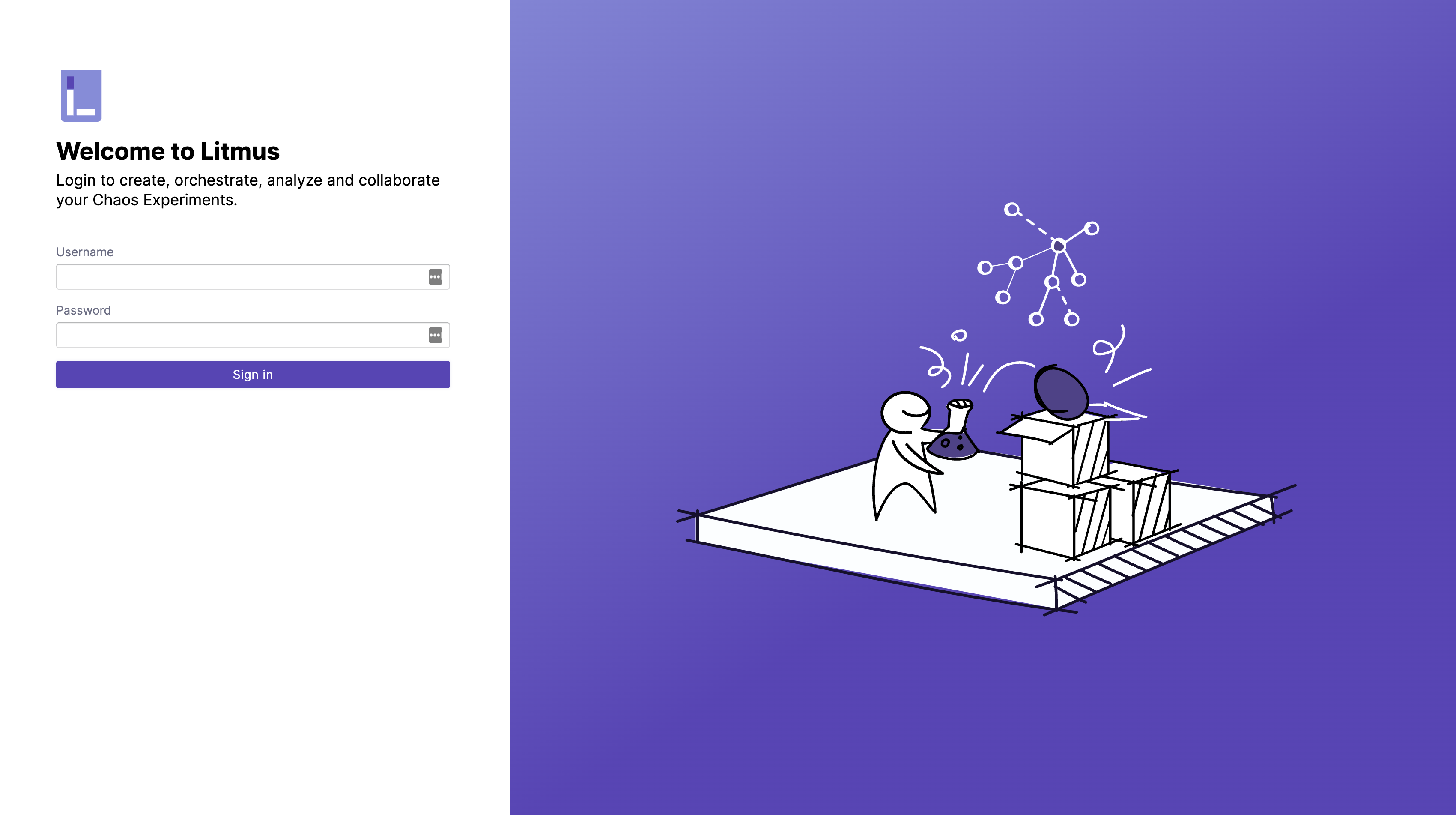 Once you are able to see the Login Screen of Litmus use the following default credentials