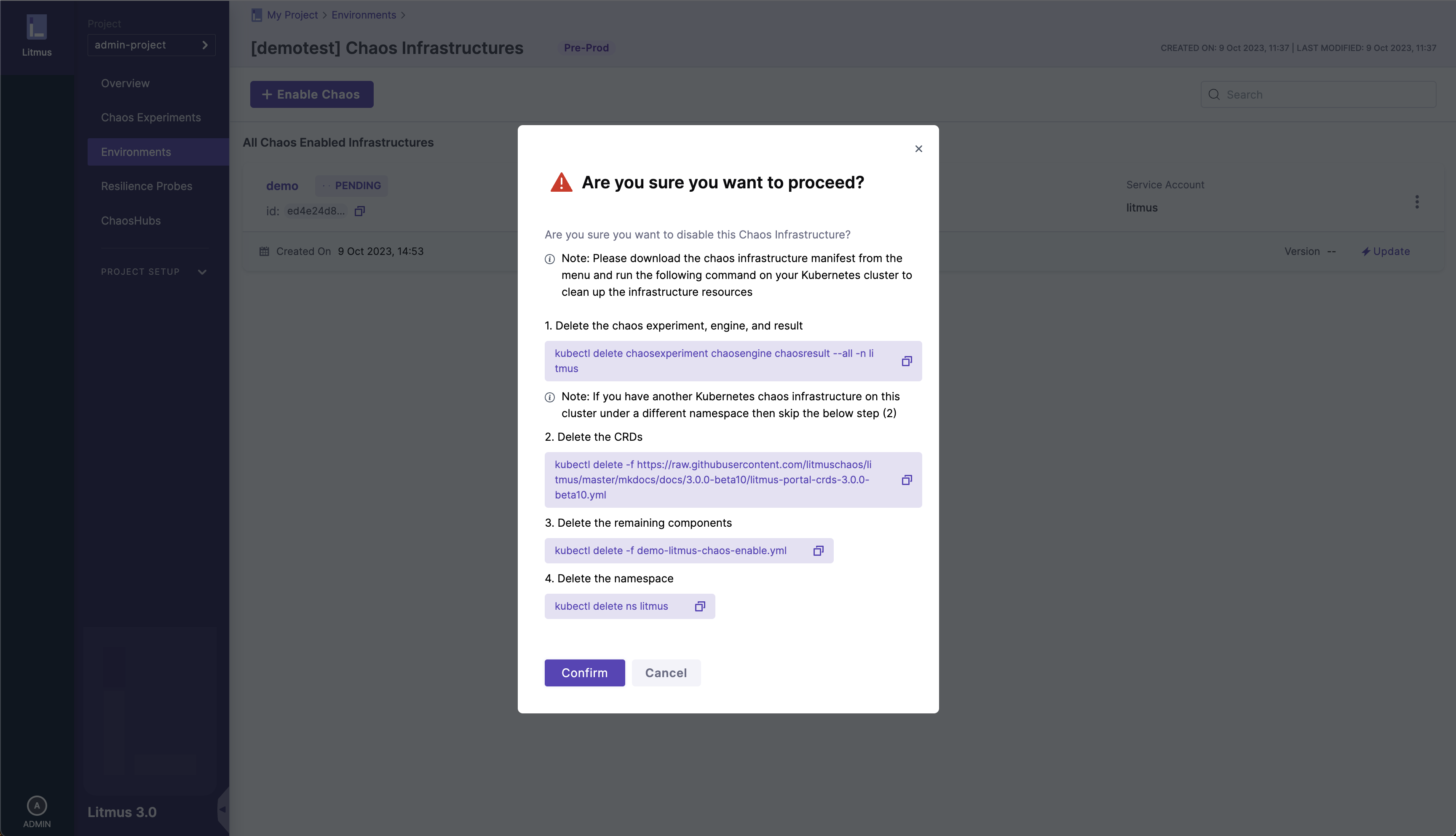 2. Confirm Infrastructure deletion​