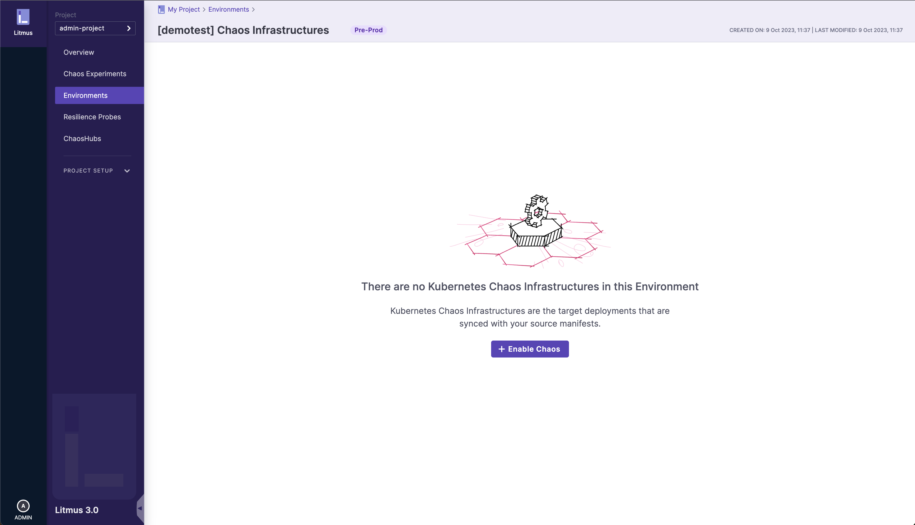 Navigate to the infrastructure you want to delete, and click on the â‹® icon to open the options menu and select Disable option: